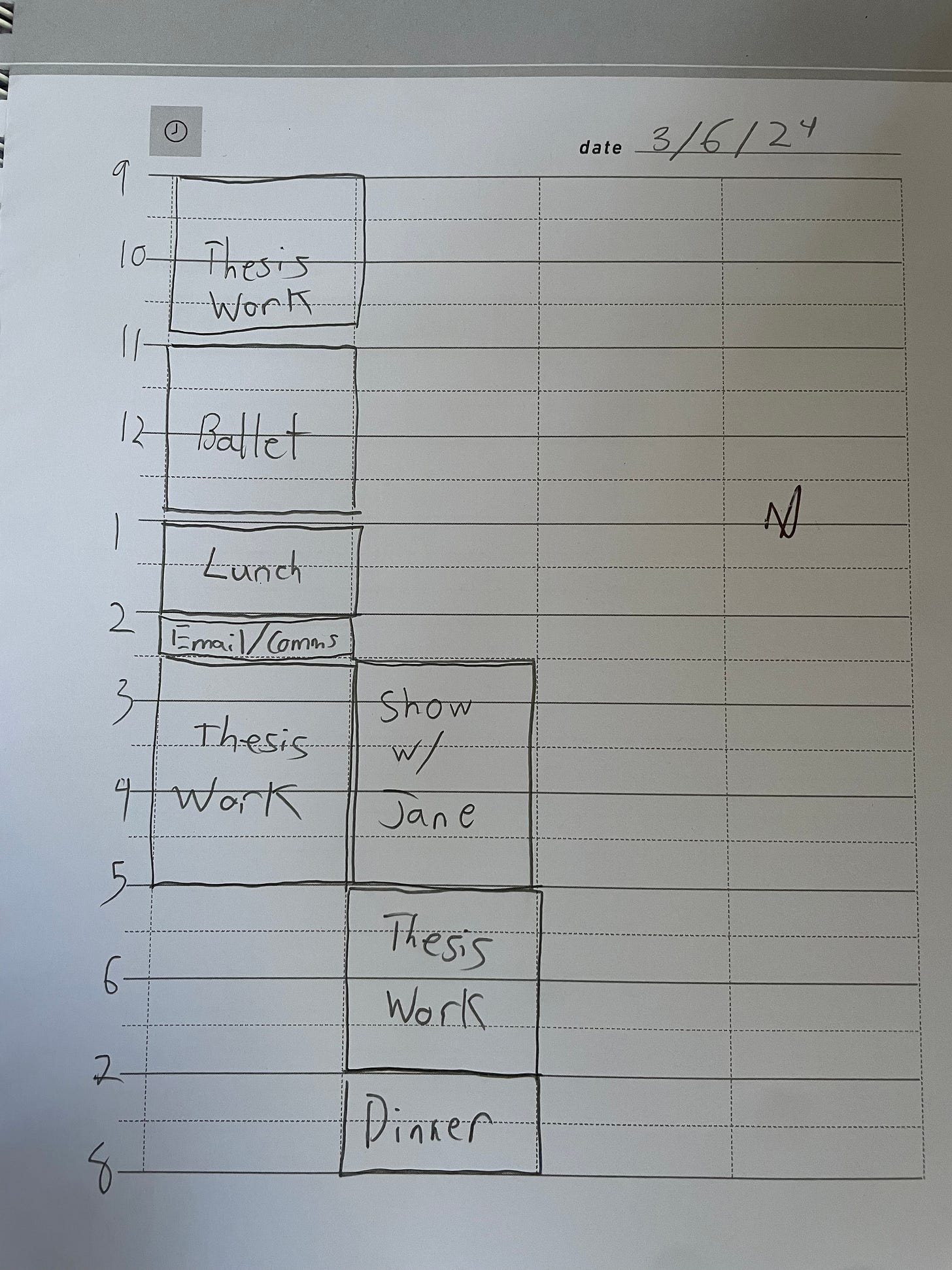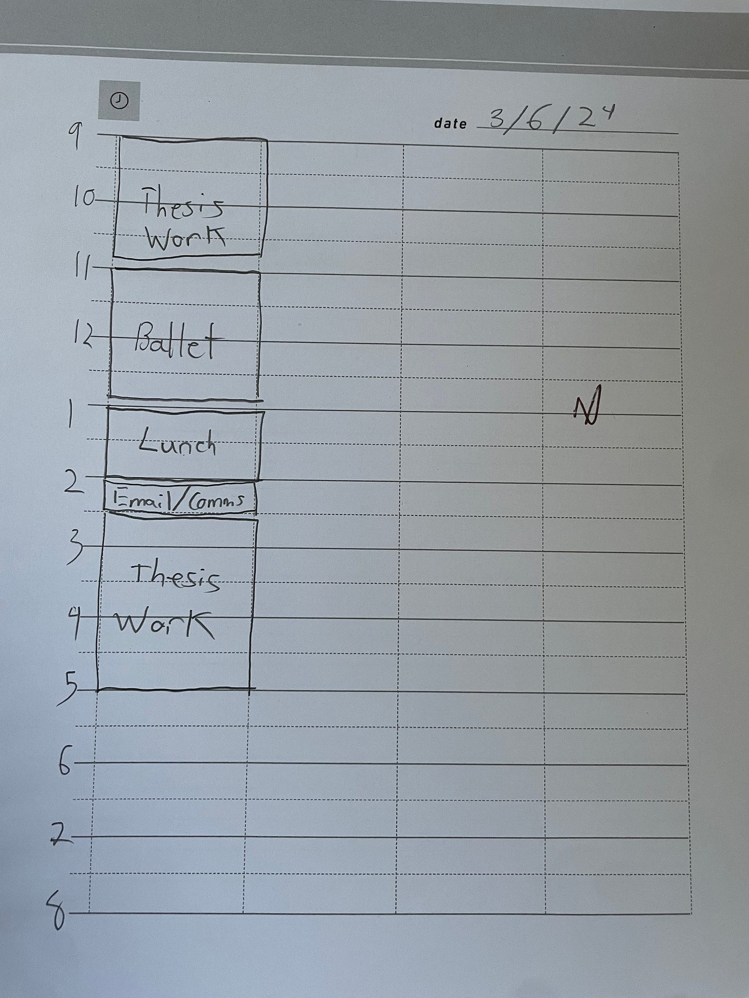 On lighter days during less demanding periods of the semester, I scheduled in more deep work blocks during the day so I could make progress on important but non-urgent tasks (like writing a thesis). I often happily left my evenings open and undefined.